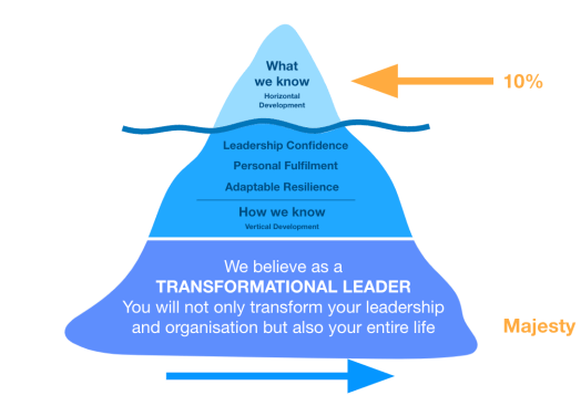 People typically focus on ‘what we know’, the acquisition of new knowledge and skills—this is what is referred to as horizontal development. It’s akin to looking at the top of the iceberg that is above the waterline.